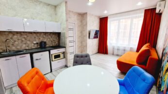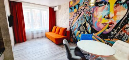 Отличная двухкомнатная квартира в новом доме с дизайнерским ремонтом. Есть все необходимое для комфортного проживания: два больших ЖК телевизора, кабельное более 150 каналов, интернет Wi-Fi, хорошая гладильная доска и утюг, фен, постельные принадлежности, полотенца, средства гигиены. Небольшая, но безумно уютная спальня, с хорошими плотными шторами, новая широкая двуспальная кровать с хорошим матрасом. Гостиная совмещена с кухонной зоной, все оформлено в современном стиле. Присутствует вся необходимая бытовая техника (керамическая варочная плита, микроволновая печь, холодильник, чайник), стол, мягкие стулья, вся необходимая новая посуда на несколько персон, фужеры, бокалы и другие приятные мелочи. С/у совмещенный, с большой новой ванной, удобным унитазом, стиральной машиной. В зоне гостиной раскладывающийся диван и ЖК телевизор. Окно с лоджией выходят во двор, что дает возможность спокойно открывать окна. Во дворе дома имеется большая современная детская площадка и хорошая парковочная зона. Такая квартира является отличной альтернативой любой гостинице, как по комфорту, так и по цене. Рядом находится множество магазинов разной направленности, торговые центры «Владимирский» и «Император», гипермаркеты «Аллея», «Командор», «Бристоль», различные кафе «Сытный дворик», «Кавказская пленница», аптеки, банки, недалеко от дома автобусная остановка. Все фотографии соответствую действительности. В квартире чисто и по-домашнему уютно. Курение в квартире запрещено.