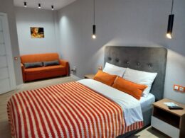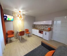Уютная, комфортабельная однокомнатная квартира в новом элитном доме в самом центре города. В квартире сделан новый шикарный ремонт с использованием дорогих и качественных материалов. В квартире имеется все необходимое для беззаботного проживания: ЖК телевизоры в комнате и на кухне, кабельное телевидение более 150 каналов, кондиционер, интернет Wi-Fi, хорошая гладильная доска и утюг, фен, сушилка для одежды, постельные принадлежности, полотенца, средства гигиены. В комнате стоит двуспальная кровать с новым дорогим матрасом премиум класса, раскладывающийся диванчик. Кухня сделана в современном стиле, оснащена современной новой бытовой техникой (керамическая варочная плита, микроволновая печь, холодильник, чайник), стол, мягкие стулья, вся необходимая новая посуда на несколько персон, фужеры, бокалы и другие приятные мелочи. С/у совмещен, установлен современный тропический душ, удобный унитаз, новая качественная сантехника, стиральная машина автомат. Окно с лоджией выходят во двор, что дает возможность спокойно открывать окна. Лоджия обшита евровагонкой. Во дворе дома расположена детская игровая площадка, а также имеется большая парковка. На первом этаже со стороны улицы расположен большой магазин широкого назначения, а также два кафе грузинской и турецкой кухни. Такая квартира является отличной альтернативой любой гостинице, как по комфорту, так и по цене. Рядом находится множество магазинов разной направленности, различные кафе, аптеки, банки, центральная почта, администрация города и республики, хакасский государственный университет, хакасский технический институт, драматический театр, около дома автобусная остановка. Все фотографии соответствую действительности. В квартире чисто и по-домашнему уютно. Курение в квартире запрещено.