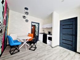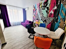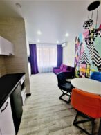 Отличная двухкомнатная квартира в новом доме с дизайнерским ремонтом. Есть все необходимое для комфортного проживания: два больших ЖК телевизора, кабельное более 150 каналов, интернет Wi-Fi, хорошая гладильная доска и утюг, фен, постельные принадлежности, полотенца, средства гигиены. Небольшая, но безумно уютная спальня, с хорошими плотными шторами, новая широкая двуспальная кровать с хорошим матрасом. Гостиная совмещена с кухонной зоной, все оформлено в современном стиле. Присутствует вся необходимая бытовая техника (керамическая варочная плита, микроволновая печь, холодильник, чайник), стол, мягкие стулья, вся необходимая новая посуда на несколько персон, фужеры, бокалы и другие приятные мелочи. С/у совмещенный, с большой новой ванной, удобным унитазом, стиральной машиной. В зоне гостиной раскладывающийся диван и ЖК телевизор. Окно с лоджией выходят во двор, что дает возможность спокойно открывать окна. Во дворе дома имеется большая современная детская площадка и хорошая парковочная зона. Такая квартира является отличной альтернативой любой гостинице, как по комфорту, так и по цене. Рядом находится множество магазинов разной направленности, торговые центры «Владимирский» и «Император», гипермаркеты «Аллея», «Командор», «Бристоль», различные кафе «Сытный дворик», «Кавказская пленница», аптеки, банки, недалеко от дома автобусная остановка. Все фотографии соответствую действительности. В квартире чисто и по-домашнему уютно. Курение в квартире запрещено.